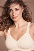The Leni soft bra offers maximum comfort without an underwire as well as a variety of feel-good features, including double-layered, seamless shaped cups made of jacquard fabric. The inner cups are made of plain stretch fabric and provide additional comfort. Especially in the larger sizes, Leni provides even more comfort thanks to an invisible breast support.