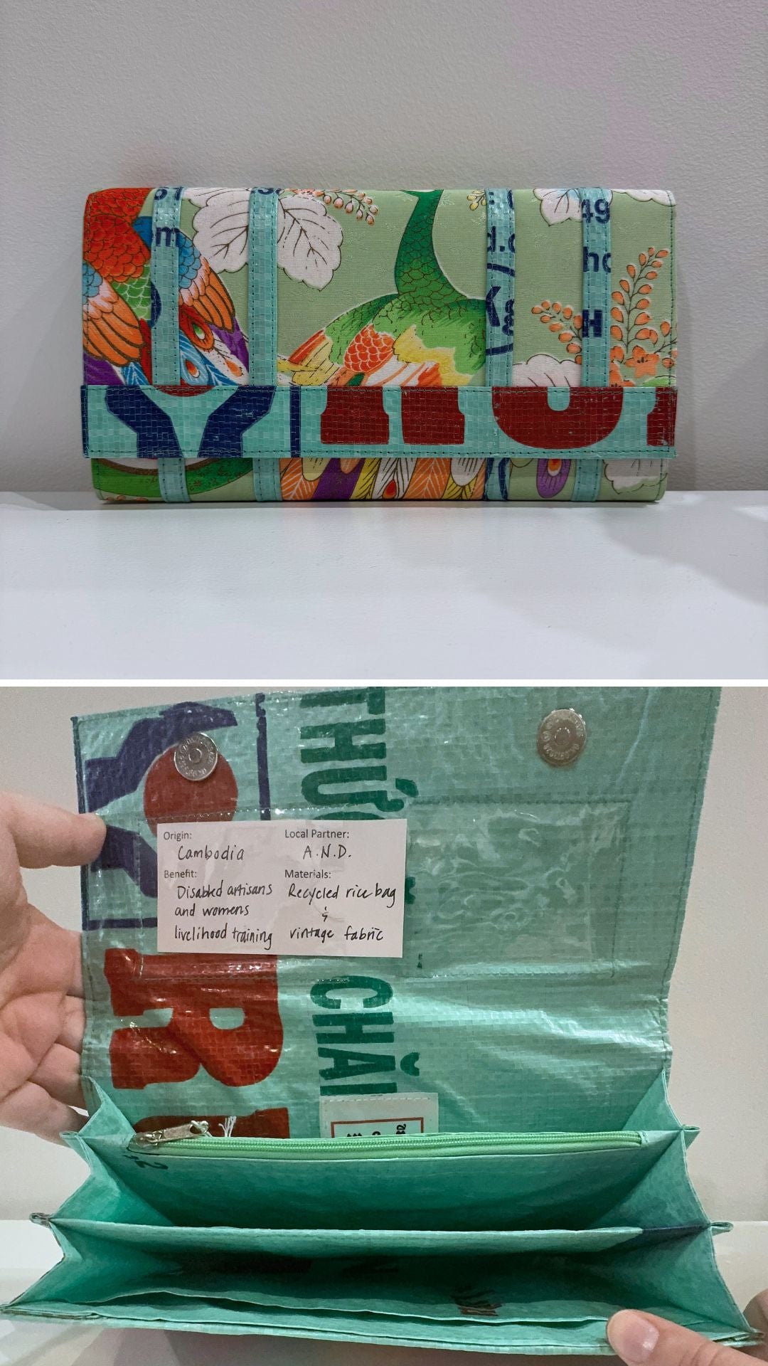 Green Peacock Vintage Fabric & Recycled Rice Bag