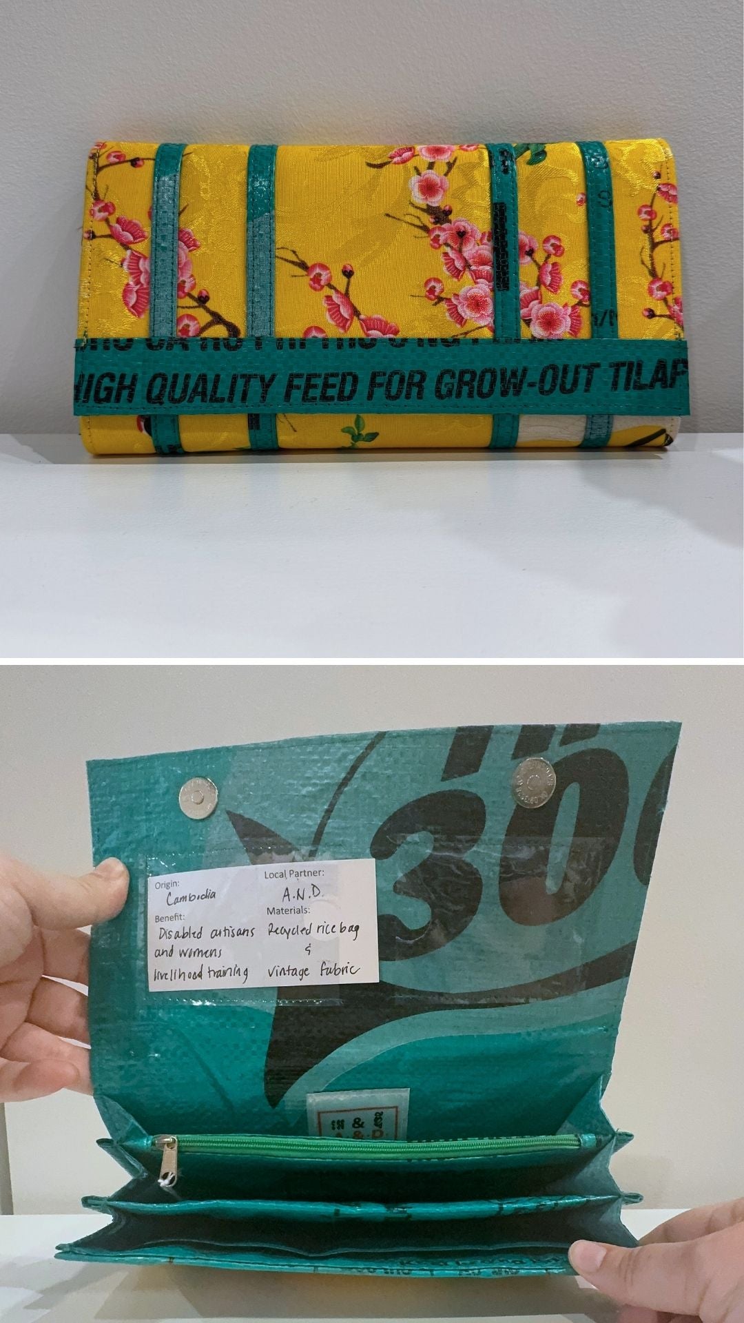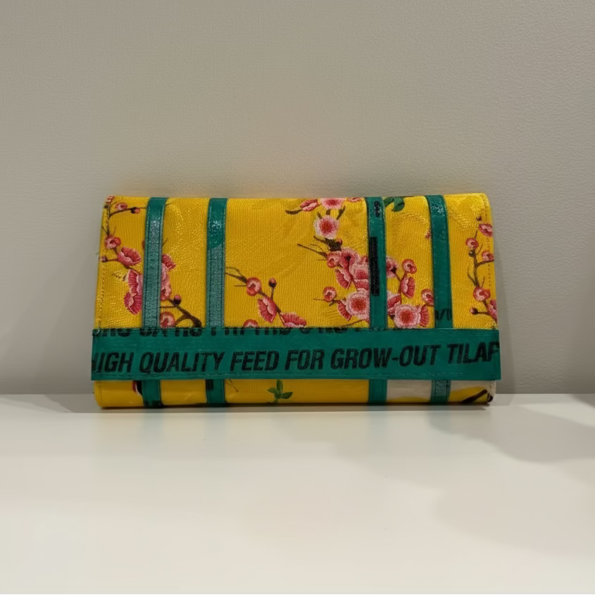 Yellow Floral Vintage Fabric & Recycled Rice Bag