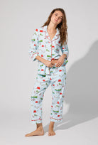 This cropped set from Bedhead brings nature to your nighttime routine with a playful forest print and breezy ¾ sleeves. Lightweight and breathable, it’s perfect for winding down on cooler nights ahead. This set features contrast piping details, a chest pocket, side pockets, and a fully elasticated waistband.