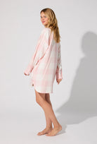 Meet your go-to lounge shirt from Bedhead: oversized, effortless, and elevated. Woven in cloud-soft flannel with a pretty pink plaid, it’s made for cozy nights and mornings in. Details include contrast knit piping inserted around the collar, 6 buttons down the center front, chest pocket, and side pockets.