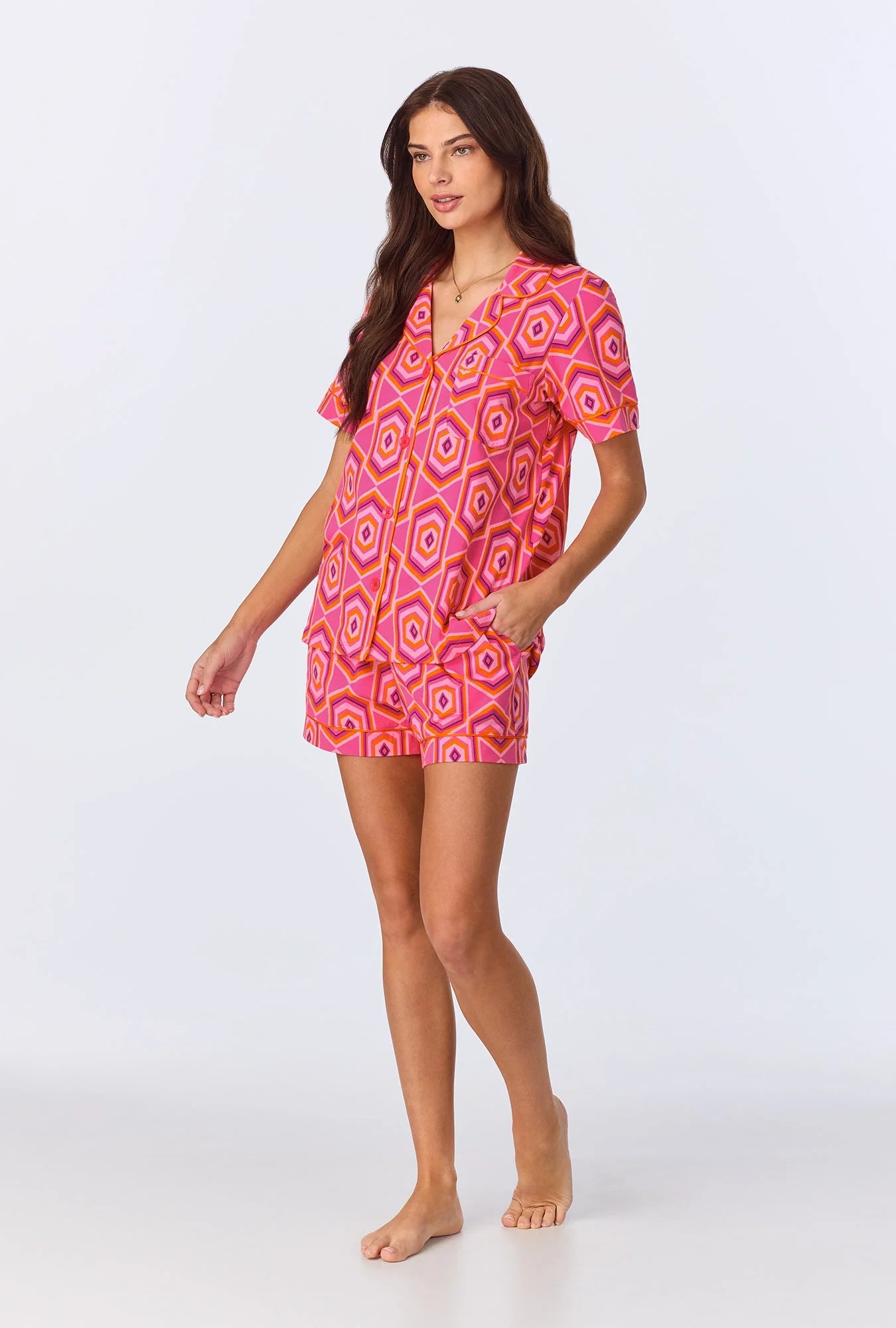 Bedhead x Trina Turk Shortsleeve Shorty PJ Set Multi Hexagon