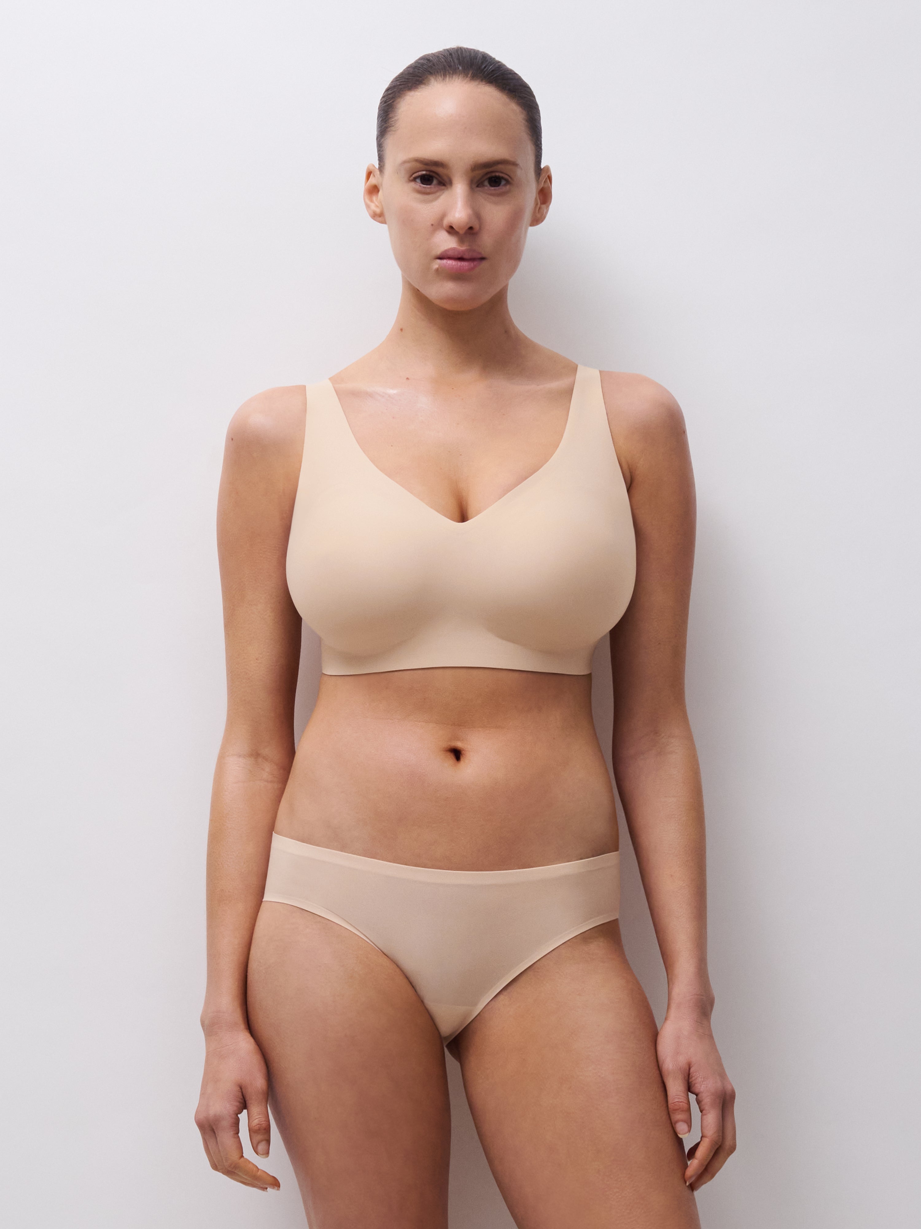 Discover the next-generation wireless bra from Chantelle, combining all-day support with ultra-soft, second-skin comfort through an innovative double-layered fabric. This style is a no-show bralette with innovative air bonding for all-day lift, bonded adaptive pads that stay in place for all-day comfort and no shifting, and a hook & eye back closure.