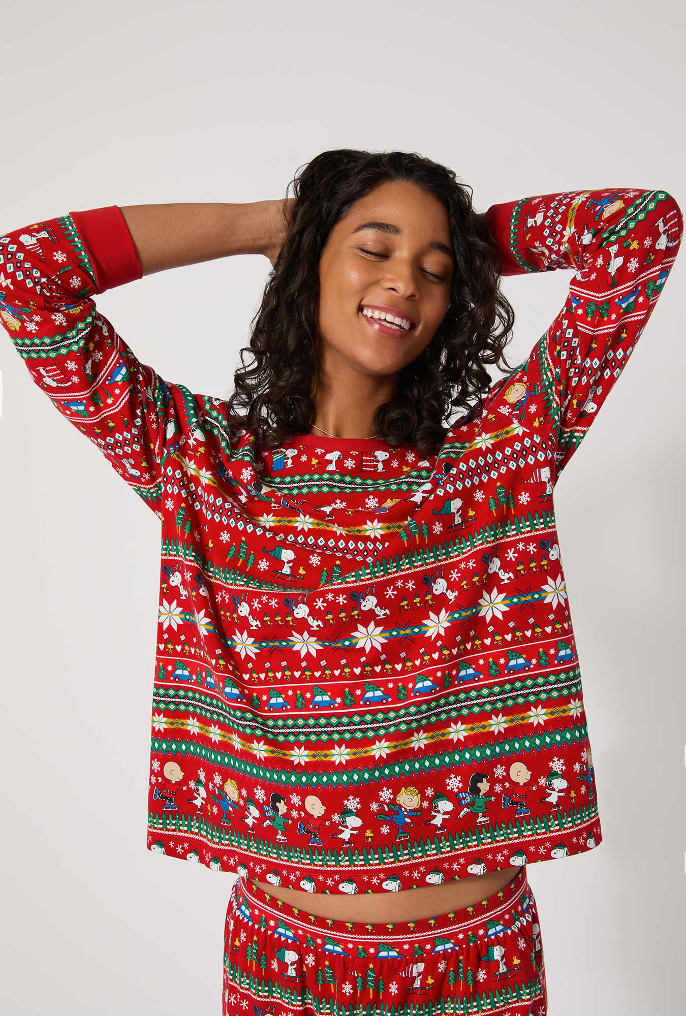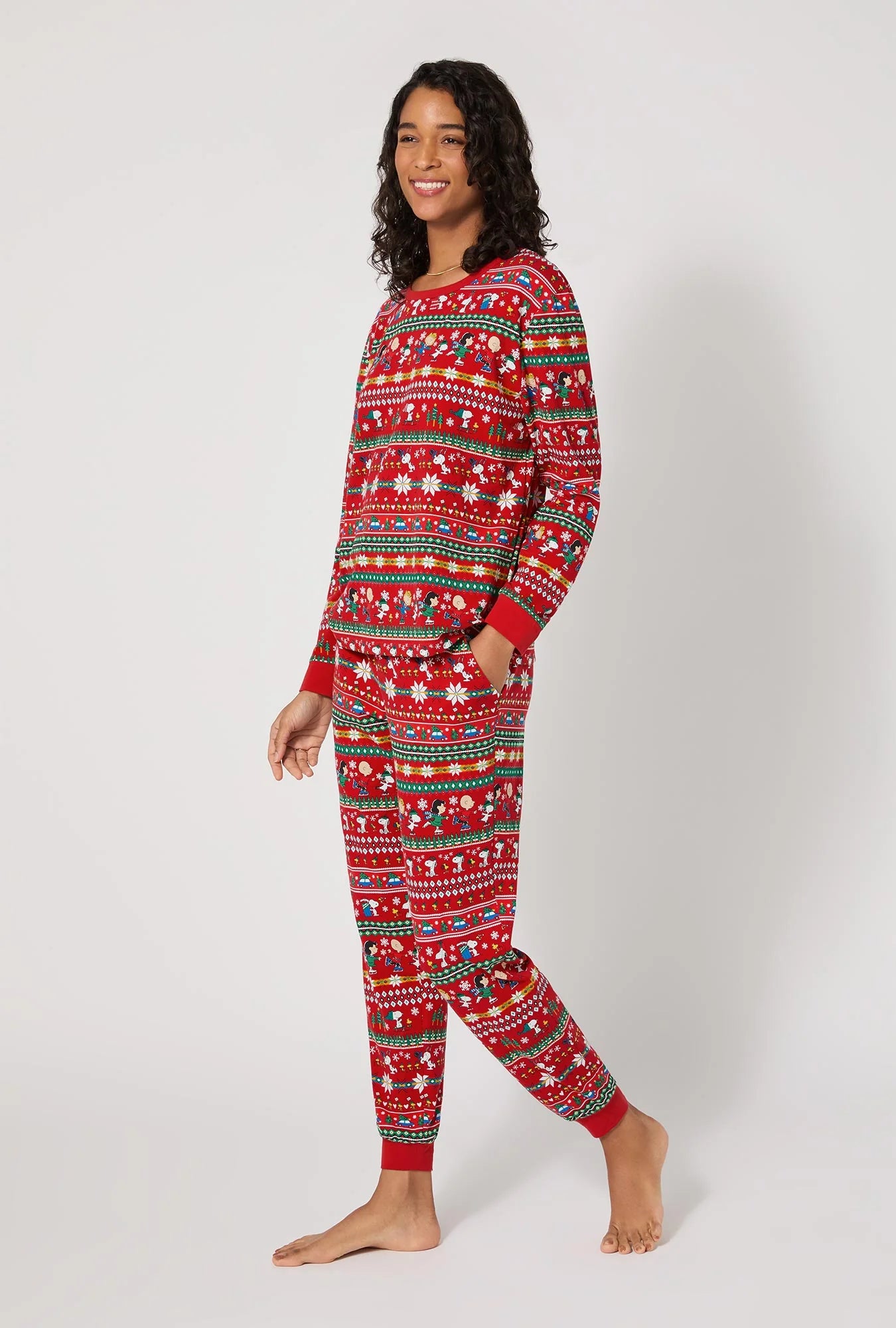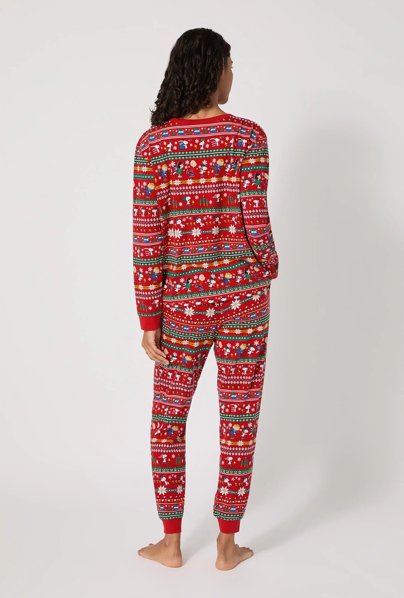 Bedhead Long Sleeve Pullover Crew & Jogger Peanuts Winter Fairisle PJ Set