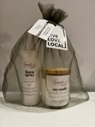 This set contains: Beneath It All's signature scent of lavender, vanilla, and mint in a linen spray and soy candle.
