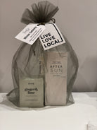This set contains: Ginger & lime exfoliating scrub, after-sun facial spray, and key lime & coconut lip butter.