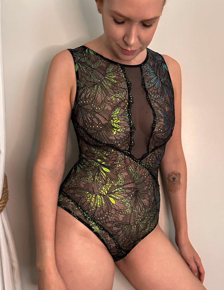Samantha Chang All Lace Halter Bodysuit Lingerie
