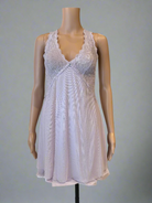 The unique racerback chemise from Clo Intimo gives bra support to most cup sizes. Designed with two layers of bias-cut tulle overlapping in front for a peek-a-boo slit effect. The racerback panel acts as additional support and a special lace cut enhances front and side support lines. The bra section is lined with tulle for added comfort, support, and coverage. Semi-precious stone appliqué for chakra energy