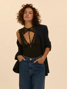 A true statement piece. The Idole Bodysuit from Simone Pérèle features delicate floral embroidery sculpted into a striking couture silhouette. Crafted from soft stretch microfiber and finished with an elegant embroidered high neckline, it’s designed to feel as exquisite as it looks. Finished with a removable decorative front strap, thong back, snap closure, and a 100% cotton gusset. Limited edition.