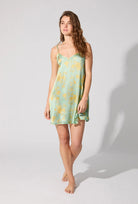Slip into something silky with this graceful chemise from Bedhead, a golden garden of roses against a soft satin backdrop. Luxe stitching at the neckline adds a refined touch to this already irresistible silhouette. The style features a v-neck neckline, and adjustable straps with rings and slides.