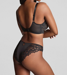Complete your black lace look with the Allure brazilian panty from Panache. Featuring sheer lace that flatters your body and a flirty keyhole cut out at the back. Matching gold ring detailing refreshes this pant for an overall sultry and sophisticated lingerie look. This medium coverage lace brazilian brief features a 100% cotton gusset and luxurious black lace.