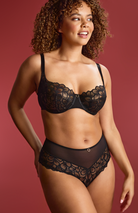Designed for the women who appreciate a little everyday luxe but don’t wish for the full coverage of theoriginal Allure silhouette from Panache, this more minimal, demi-style balcony perfectly frames your curves, offering a completely different, lighter look. If you look closely at the lace, you might even spy a heart! The style is a 4 piece, wired, non padded demi balcony bra with a stretch lace top cups and lined bottom cups offer an accommodating fit for all bust types. Consciously developed, using recycled yarns.