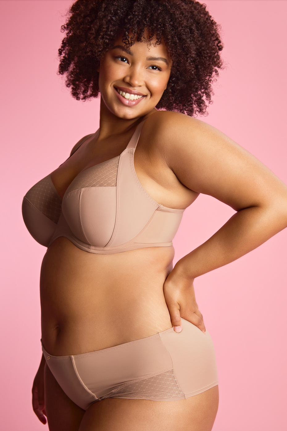 Bliss from Sculptresse promises to keep you supported all day long. Uniquely engineered, this everyday essential offers a forgiving fit without compromising on comfort. This style features a 4 piece full cups, stretch top cups and rigid bottom cups that offer accommodating fit for all bust types, custom developed lace for an enhanced fit and support without the need for a top cup liner or neck edge elastic, a wing that has a more vertical shape from the hook and eye up to the strapping giving a semi racer effect providing more centred straps and added comfort, and smoothing wings that offer side support.
