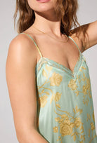 Slip into something silky with this graceful chemise from Bedhead, a golden garden of roses against a soft satin backdrop. Luxe stitching at the neckline adds a refined touch to this already irresistible silhouette. The style features a v-neck neckline, and adjustable straps with rings and slides.