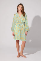 Wrap yourself in floral luxury with this stunning silk satin robe from Bedhead, designed for mornings that start slowly and stylishly. It features a tie waist, a golden blooms pattern, and a statement in softness.