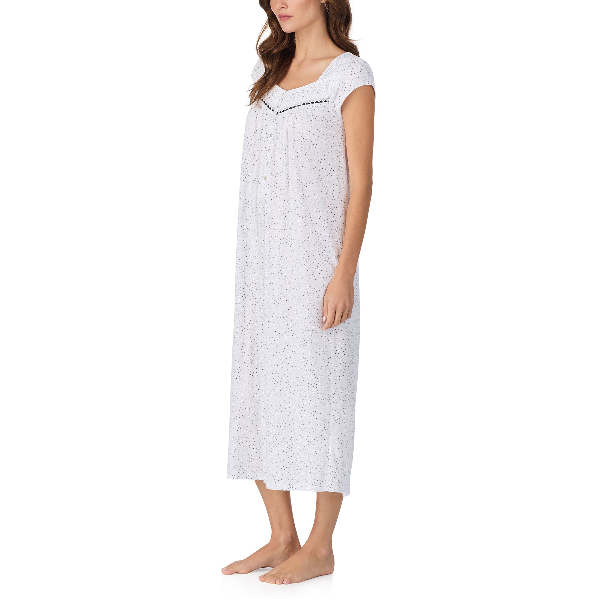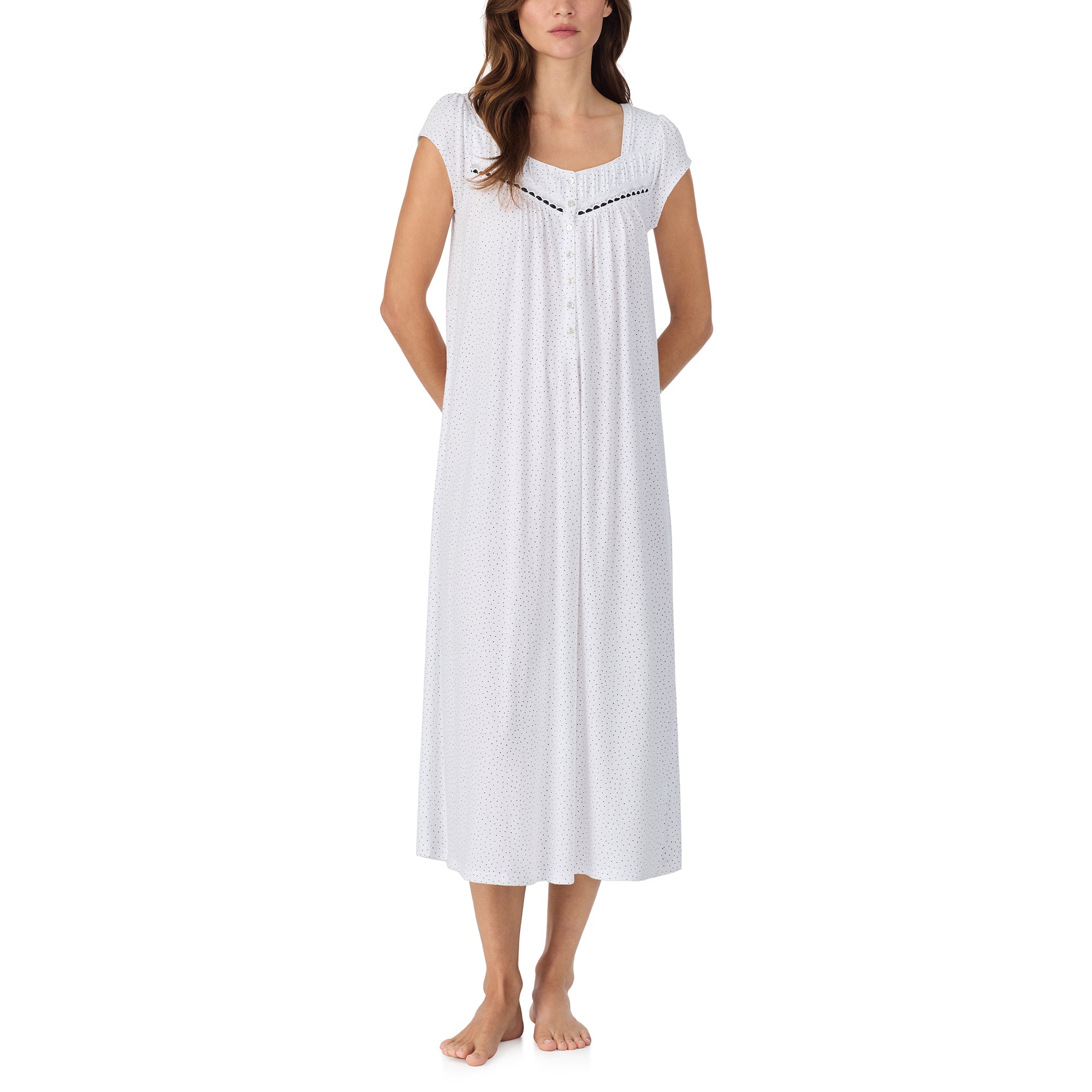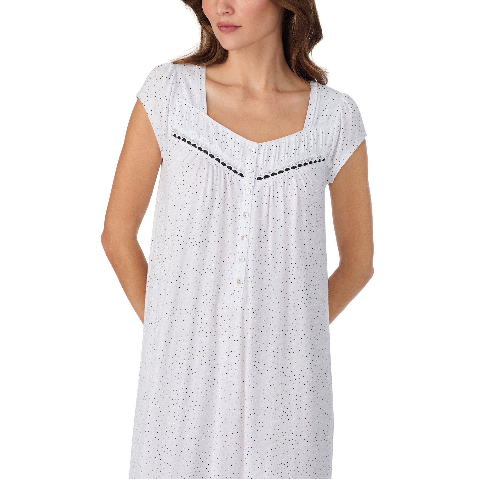 Eileen West Capsleeve Long Nightgown Cotton Jersey Black Dot