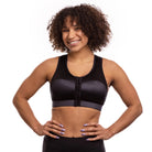 • FRONT CLOSE:  Fasten your bra easily and securely with front hook and eye closures. If a sports bra is stretchy enough to fit over your head, it’s too stretchy to contain the bounce.