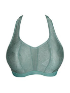 Elevate your workout with The Game Padded Racerback Sports Bra in Sage from luxury brand PrimaDonna. A supportive underwire and padded cups provide ultimate comfort and support, while the cross straps can be worn two ways for versatility and a functional racerback option. The geometric patterned lace adds a touch of sophistication to this stylish sportswear essential. Breathable moisture-wicking fabric that dries quickly, and feels soft to the skin.