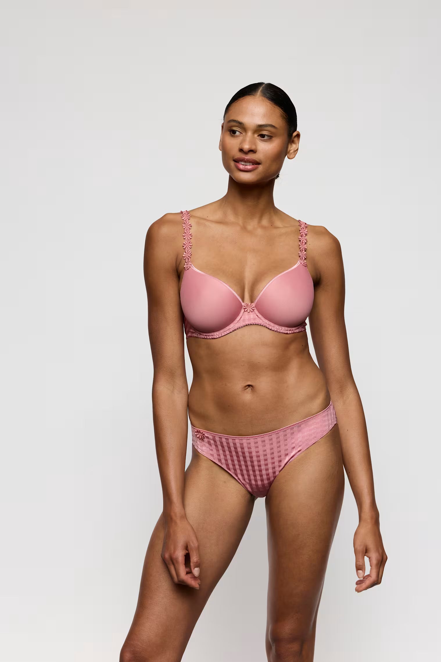 This Marie Jo style is famous for its iconic daisy straps and its legendary fit. It is an ultralight spacer bra with a stylish, non-transparent design and daisy straps to hide or show. In a gorgeous pink that’s invisible under white.