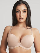 Look no further for the perfect plunge bra, Panache’s Faith plunge bra offers the perfect underwire plunging t-shirt bra that creates a smooth silhouette under clothes, making this style ideal for the foundation to any low cut outfit. The smooth moulded, padded cups sit on a cradle to offer anchorage and support and the straps with a convertible j-hook offers enhanced support and lift. Mesh detailed wings offer firm and comfortable support around the body, whilst the high back apex styling and back scoop provide smoothing coverage across the back.