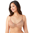Wacoal’s best-selling smoothing solution features an innovative band of microthin spacer fabric that minimizes bulge to give you a sleek look. The seamless underwire bra offers full coverage two-ply cups of soft inner fabric covered with pretty dot jacquard fabric with accent sheen. Fully adjustable straps and hook-and-eye back closure provide a customized fit.